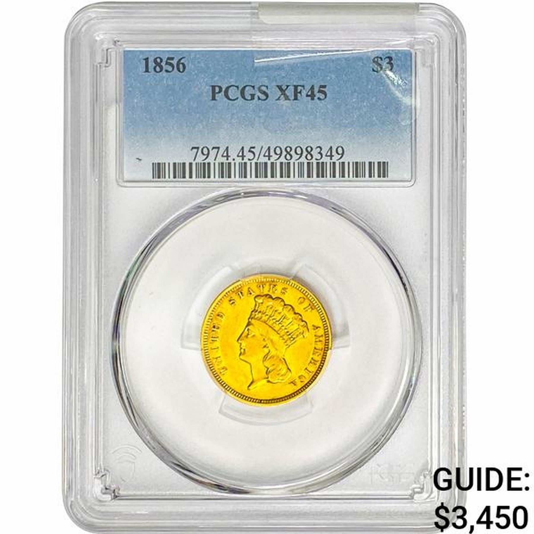1856 $3 Gold Piece PCGS XF45