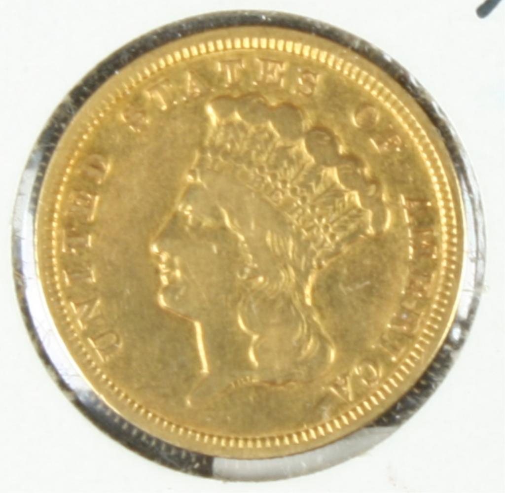 1856 $3 U.S. Gold Coin, uncirculated, not  professionally graded. Est. $600-$1,200