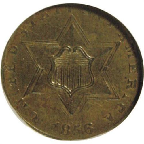 <B>1856 3CS AU58 NGC.</B></I> NGC Census: (30/203). PCGS Population (33/210). Mintage: 1,458,000. Numismedia Wsl. Price for NGC/PCGS coin in AU58: $192. (#3672)<BR><BR><B>Coin Engraver:</B> James B. Longacre<BR><BR><b>Shipping:</b> Coins & Currency (<a target="_blank" href="http://www.heritageauctions.com/common/shipping.php">view shipping information</a>)