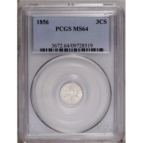 1856 3CS MS64 PCGS. Mostly brilliant with thick, satin 1856[3CS] MS64 PCGS.