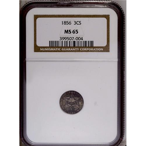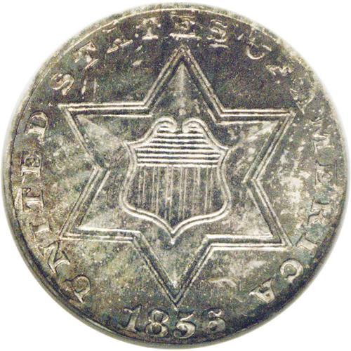 "1856 3CS MS65 NGC. Speckled sea-green, "
