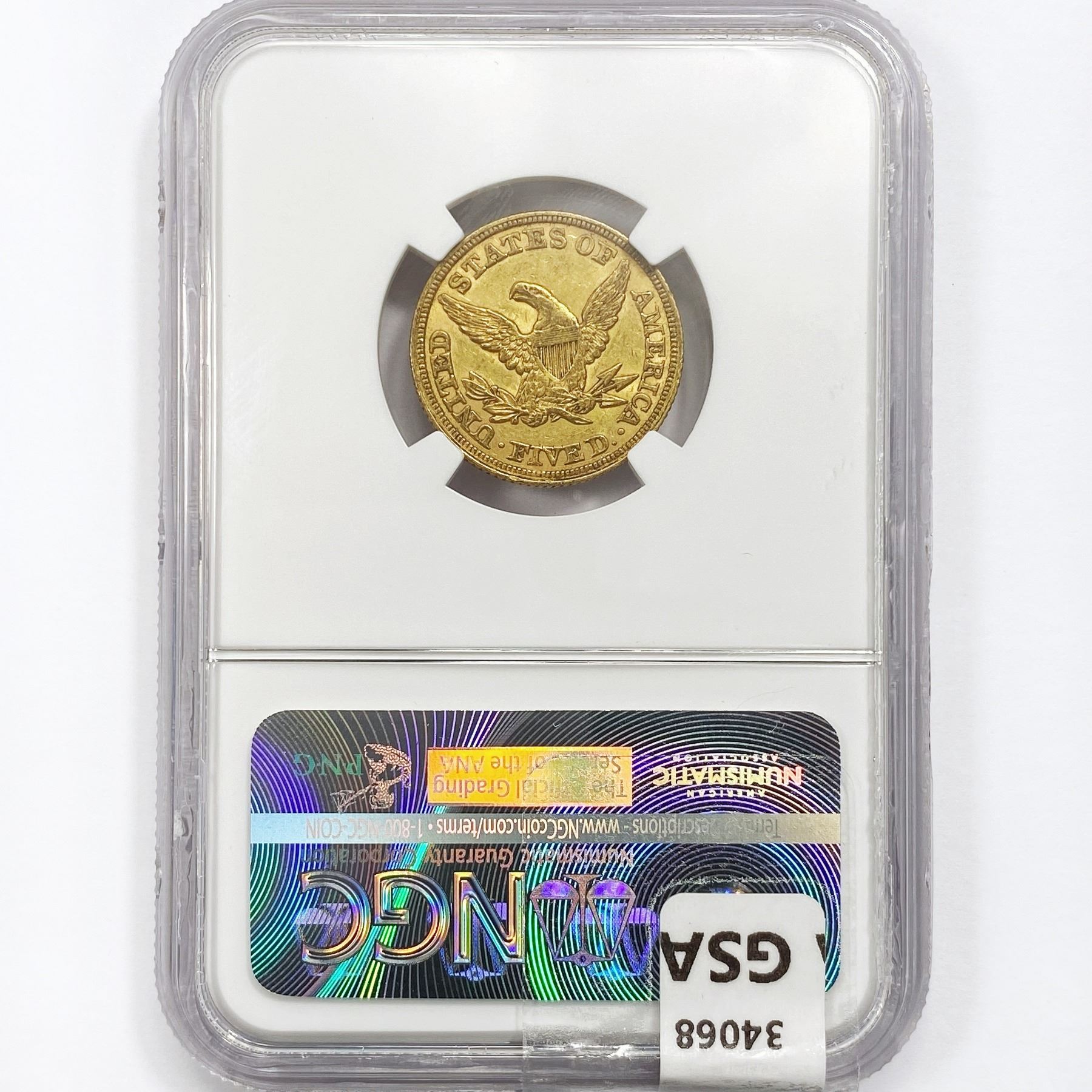 1856 $5 Gold Half Eagle NGC AU58 Rive d'Or Coll