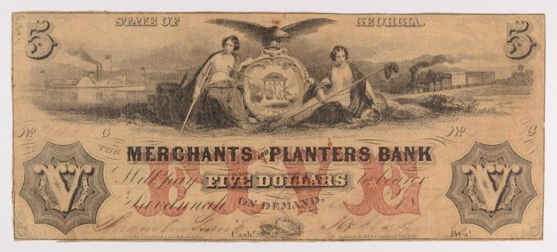 1856 $5 Merchants and Planters Bank Savannah, GA