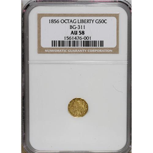 1856 50C Liberty Octagonal 50 Cents, BG-311, Low R.4