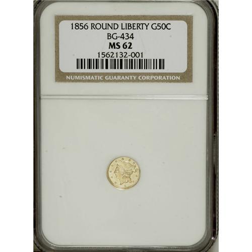 1856 50C Liberty Round 50 Cents, BG-434, Low R.4, MS