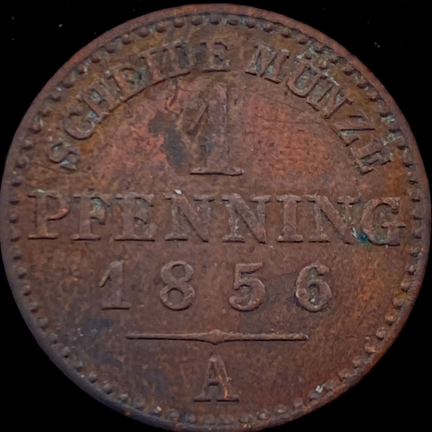 1856-A Prussia Copper 1 Pfennig CLOSELY UNCIRCULATED