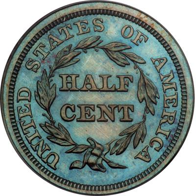 1856 Breen 1-C Rarity-4 Doubled T in CENT (Proof-Only). PCGS graded Proof 65 Brown. Attractive dark bluish steel and chocolate delicately mixed with specks of slightly lighter brown toning on the obverse. No spots, stains, or contact marks, only faint hairlines in the fields on both sides. The fields are nicely reflective with moderately deep mirrors and the eye appeal is excellent. Sharply struck on a flawless planchet. A premium example of this proof-only variety. The doubled T in CENT feature is clear (actually this is a doubled die and most of CENT shows strong doubling). Our grade is Proof-64. Pop 4; none finer at PCGS.