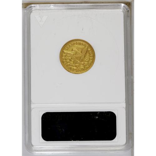 <B>1856-C $2 1/2 --Ex-Jewelry--ANACS. VF20 Details.</B></I> Variety 17-J. Bright yellow-gold surfaces display wisps of light green and rose undertones. Generally nice detail is seen on the design features, considering the issue's reputation for a poor strike. Slight surface deformation is noted between star 2 and Liberty's mouth. This is one of the rarer Charlotte Mint quarter eagles, which had a mintage of only 7,913 coins. Really not a bad looking coin, despite the ANACS disclaimer.<BR><BR><b>Shipping:</b> Coins & Currency (<a target="_blank" href="http://www.heritageauctions.com/common/shipping.php">view shipping information</a>)