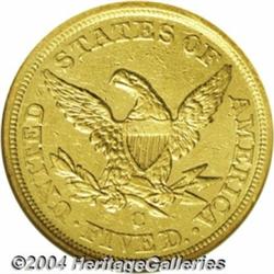 <table><tr><td><table><tr><td>1856-C $5 XF45 NGC. Variety 24-J, the only known dies. This is an uncommonly high grade survivor of this underrated C-mint rarity. The 1856-C (28,457 pieces produced) is typically offered no finer than XF40. What's more, the definition that remains once one takes into account overall light wear is rather bold for this often poorly impressed issue. We do, however, note some bluntness of detail over a few of the obverse star centrils. Both sides bright yellow-gold color atop typically abraded surfaces. <BR><BR><B>Important notice:</B> Heritage usually auctions material at the rate of 200-250 lots per hour. On some occasions eBay Live bid software or the Internet may not be able to keep up with the pace of the auction. We recommend placing a realistic absentee bid now as insurance to avoid disappointment. Occasionally the auctioneer may eliminate or reject an eBay Live bid, and the auctioneer may also reopen a lot after the close of the eBay live bidding (usually because we missed an audience bid), and may reject your bid even if it shows you as the winning bidder. By bidding via eBay Live, you agree that Heritage may award the lot to another bidder at its sole discretion under the circumstances described above or any other reasonable circumstances. Since eBay bids are not shown to us until we open the lot on the floor, we treat those bids just like floor bids. In most cases the floor responds before the eBay bid is presented to us, due to Internet lag time, so for consistency we have made it a policy that floor bids are always considered first over tie eBay live bids. Also please note that all Heritage lots purchased through eBay Live carry a 20% Buyer's Premium. Please make sure you read the Terms and Conditions before you bid. <BR><BR><B>IMPORTANT ANNOUNCEMENT ABOUT RESERVES:</B> Heritage now divulges all reserves on its web site 7 days before every auction. If you want to know whether the reserve on this lot has been met, and if not, what the reserve amount is, please visit this lot page on the HeritageCoin.com web site, or email: bid@HeritageGalleries.com </span></font></td></tr></table></td></tr></table>