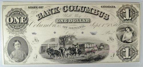 1856 COLUMBUS, GEORGIA $1 PROOF NOTE PMG 58 RARE