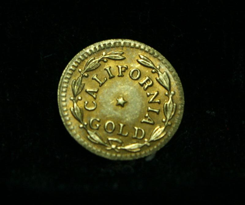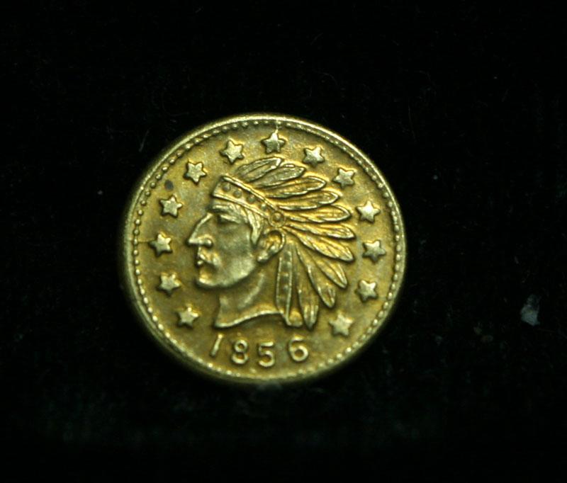 It took me a bit of time to identify this great piece. It turns out this is a California gold token. California gold tokens were not minted in the year displayed. This token was minted in the 1920's or 1930's. It has no denomination on it, just California Gold on the reverse. I have had a tough time estimating the value, I could find no prior sales. Best guess, $250