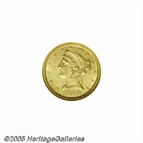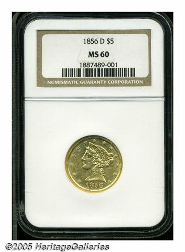 1856-D $5 MS60 NGC. Variety 33-BB, the only curre