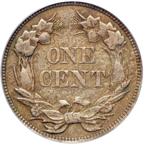 Mint designer-engraver James Barton Longacre reworked Gobrecht's famous flying eagle of 1836-9 and placed it on the obverse of America's newly introduced Small Cents. These were first given the name "white cents" by the public and must have been strikingly brilliant and silvery when new compared to the old red Large Cents then being withdrawn. For the reverse Longacre adapted his first wreath of cereals design first used on Gold Dollars and Three-dollar Gold pieces but differing from the wreath used on half dimes and dimes of the period. Together, these borrowings combine to give us one of our nation's most distinctive and attractive coin designs. It is unfortunate the Flying Eagle had to be retired so early. Unfortunate, that is, for lovers of artistic coinage; but fortunate for today's avid coin buyers.