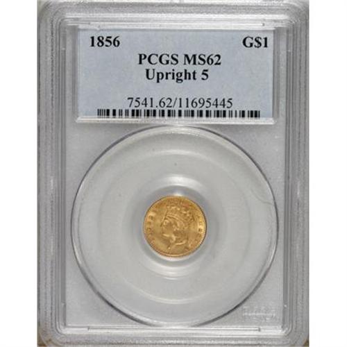 1856 G$1 Upright 5 MS62 PCGS. PCGS Population (17/