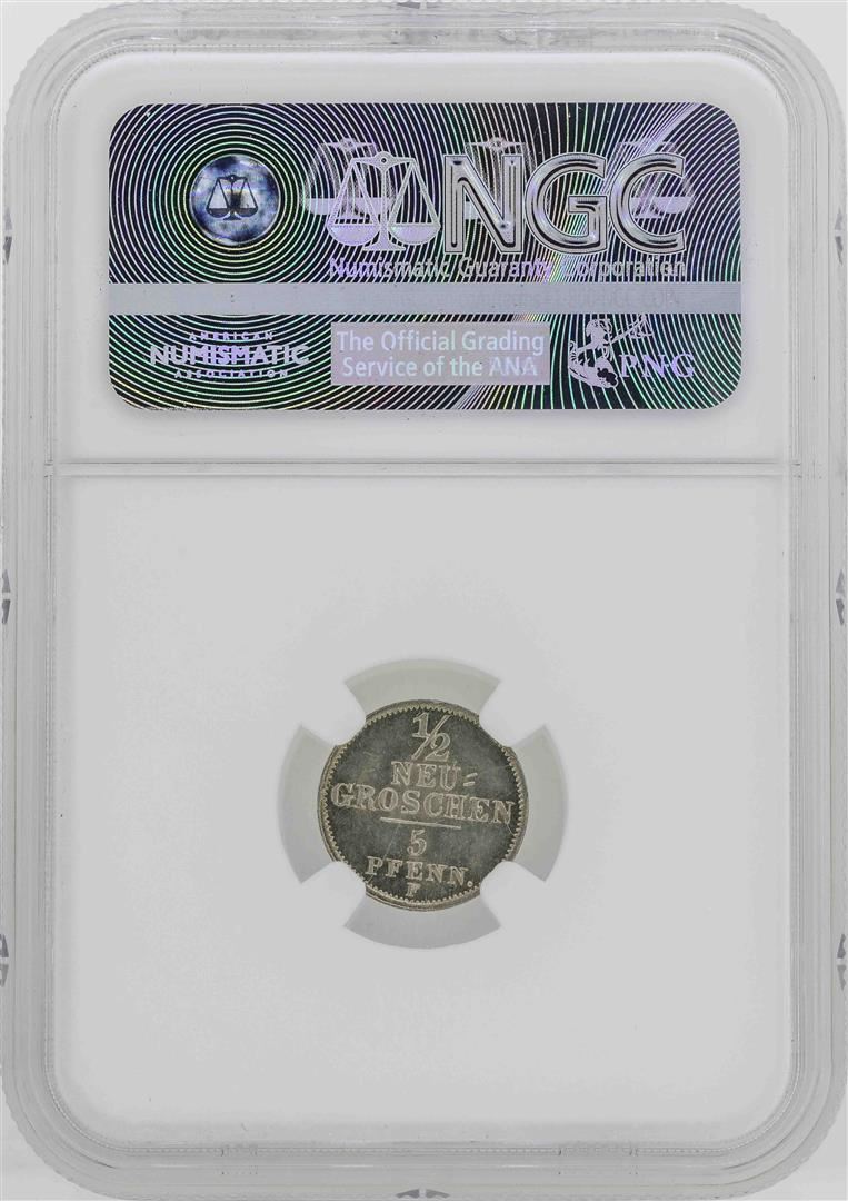 One 1856 Germany Saxony 1/2 Neu Groschen Coin NGC MS66. NGC Certified.
