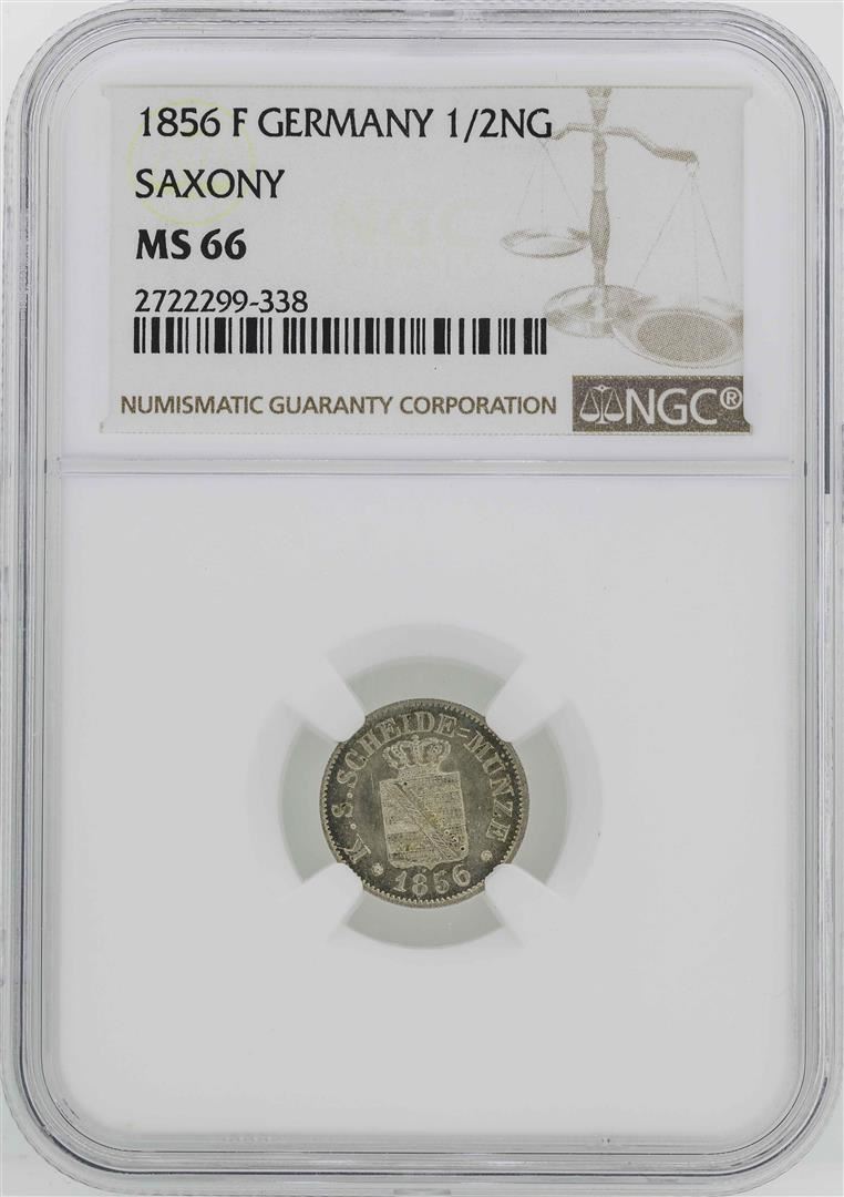 One 1856 Germany Saxony 1/2 Neu Groschen Coin NGC MS66. NGC Certified.