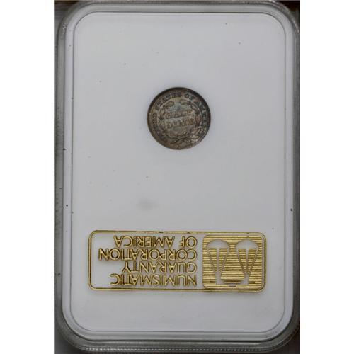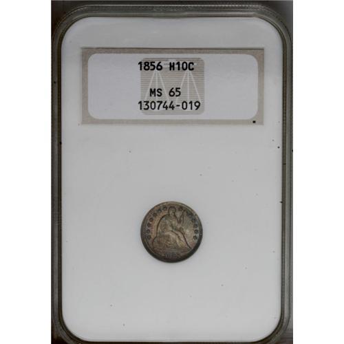 <B>1856<H10C> MS65 NGC.</B></I> Lushly toned in rose, lime, and gold hues. Well struck except for the denticles. A short mark above the H in HALF precludes a finer grade. Certified in an old, pre-hologram NGC holder.