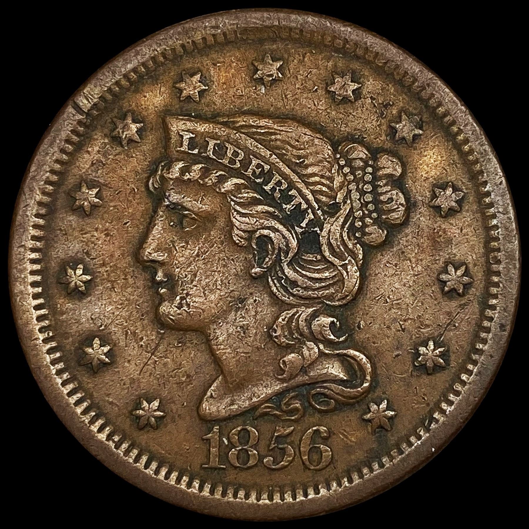 1856 Large Cent Slanted 5 LIGHTLY CIRCULATED