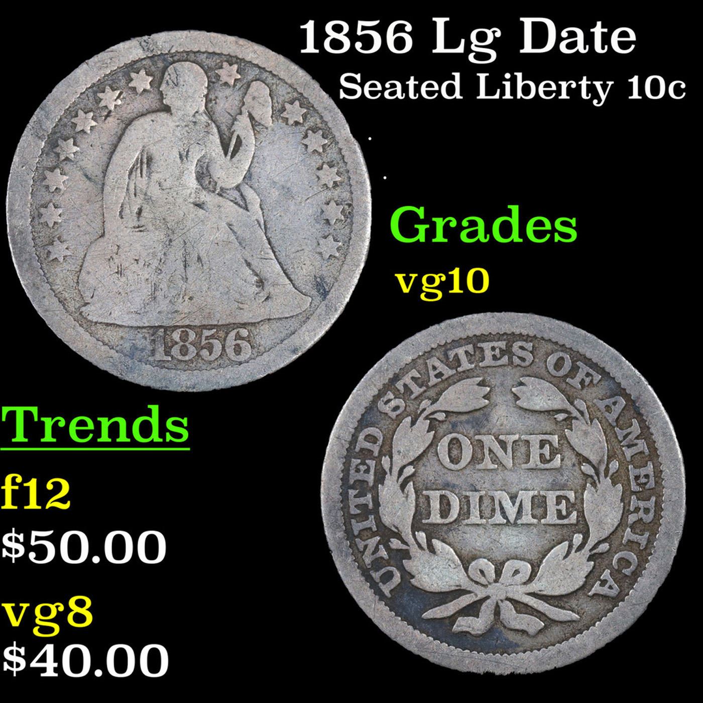 1856 Lg Date Seated Liberty Dime 10c Grades vg+.