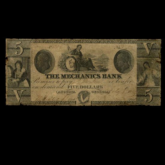 Rare 1856 broken bank note Mechanics Bank Augusta; these notes were issues in series of less than 10000 each; better than average condition
