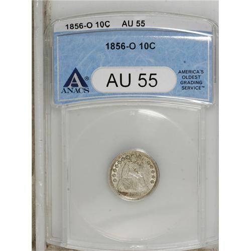 <B>1856-O 10C AU55 ANACS.</B></I> NGC Census: (5/32). PCGS Population (7/19). Mintage: 1,180,000. Numismedia Wsl. Price: $392. (#4612)<BR><BR><b>Shipping:</b> Coins & Currency (<a target="_blank" href="http://www.heritageauctions.com/common/shipping.php">view shipping information</a>)