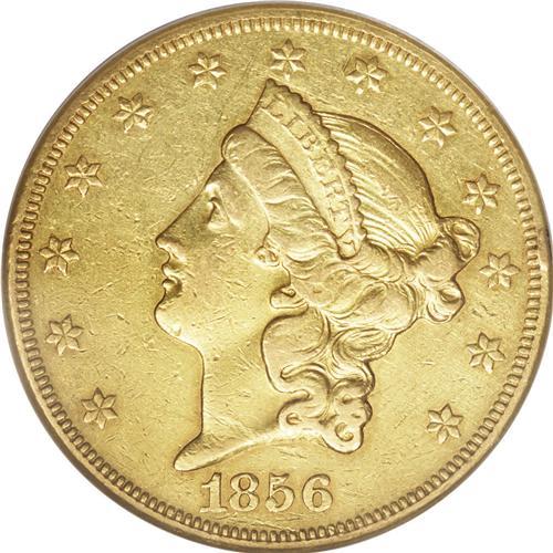 <B>1856-O<$20>--Improperly Cleaned--NCS. XF Details.</B></I> This is the classic key-date issue in the Liberty double eagle series, and this example with its light hairlines and minor abrasions may prove to be an affordable alternative to those coins that have been offered in the recent past. The original mintage of this coin was just 2,250 pieces, making it the rarest New Orleans Mint double eagle, with only the 1854-O issue being a close contender. Very few coins struck at this Southern branch mint have lower mintages or smaller surviving population. Estimates of the number of survivors range from a low of 10 coins (Breen) to a high of 20 coins (Winter). Most examples surviving today are similar quality to this coin, being in the Very Fine to Extremely Fine range. Perhaps just three or four finer examples exist, including a splendid Mint State specimen.<BR> The surfaces are medium greenish-gold, with hints of pinkish color on the devices. Despite being cleaned, the fields retain reflectivity that is always seen on these coins. Traces of luster are still visible around the devices. The surfaces are lightly abraded as usual, with two or three specific marks for pedigree tracking. Hair details are a little softly defined, as are the eagle's wingtips; however, all other obverse and reverse design details are well defined. The obverse has a small rim bruise at 3 o'clock and a tiny abrasions close to the bust line above the right side of the digit 5. The reverse has a short horizontal mark above the right side of the eagle's head, but in a different location from the coin we sold in our 1997 ANA sale.