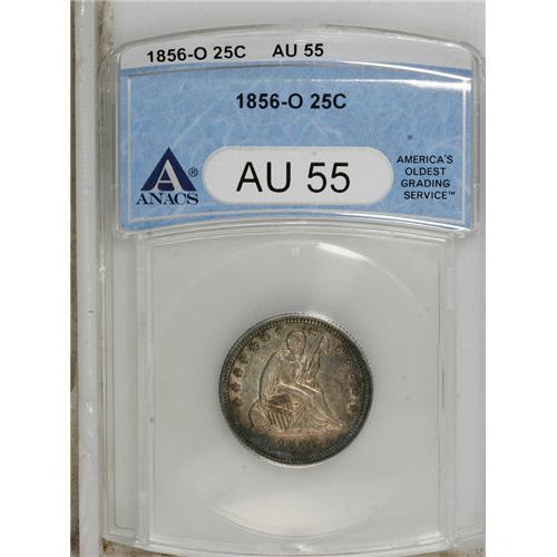 <B>1856-O 25C AU55 ANACS.</B></I> NGC Census: (5/28). PCGS Population (1/19). Mintage: 968,000. Numismedia Wsl. Price: $450. (#5439)<BR><BR><b>Shipping:</b> Coins & Currency (<a target="_blank" href="http://www.heritageauctions.com/common/shipping.php">view shipping information</a>)