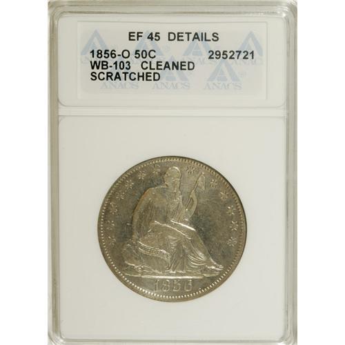 <B>1856-O 50C --Cleaned, Scratched--ANACS. XF45 Details.</B></I> WB-103. NGC Census: (5/149). PCGS Population (16/143). Mintage: 2,658,000. Numismedia Wsl. Price: $112. (#6288)<BR><BR><b>Shipping:</b> Coins & Currency (<a target="_blank" href="http://www.heritageauctions.com/common/shipping.php">view shipping information</a>)