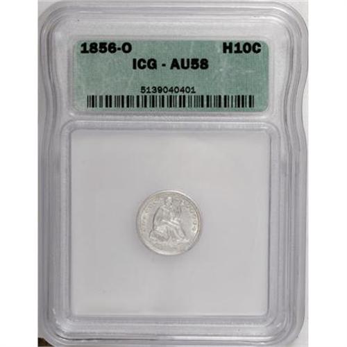 <B>1856-O H10C AU58 ICG.</B></I> NGC Census: (22/27). PCGS Population (8/24). Mintage: 1,100,000. Numismedia Wsl. Price for NGC/PCGS coin in AU58: $275. (#4364)<BR><BR><B>Coin Engraver:</B> Christian Gobrecht<BR><BR><b>Shipping:</b> Coins & Currency (<a target="_blank" href="http://www.heritageauctions.com/common/shipping.php">view shipping information</a>)