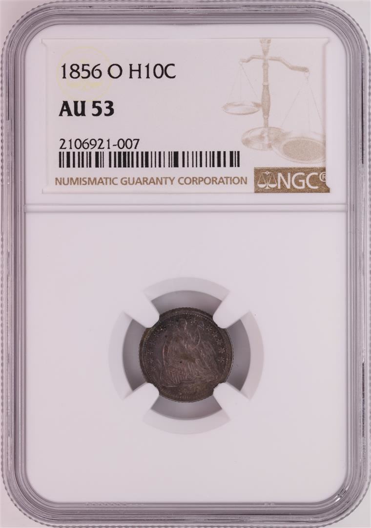 One 1856-O Seated Liberty Half Dime Coin NGC AU53. NGC Certified.