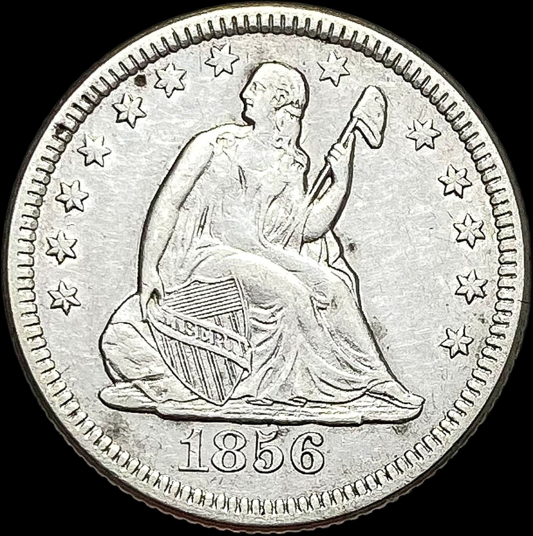 1856-O Silver Seated Liberty Quarter CLOSELY UNCIRCULATED