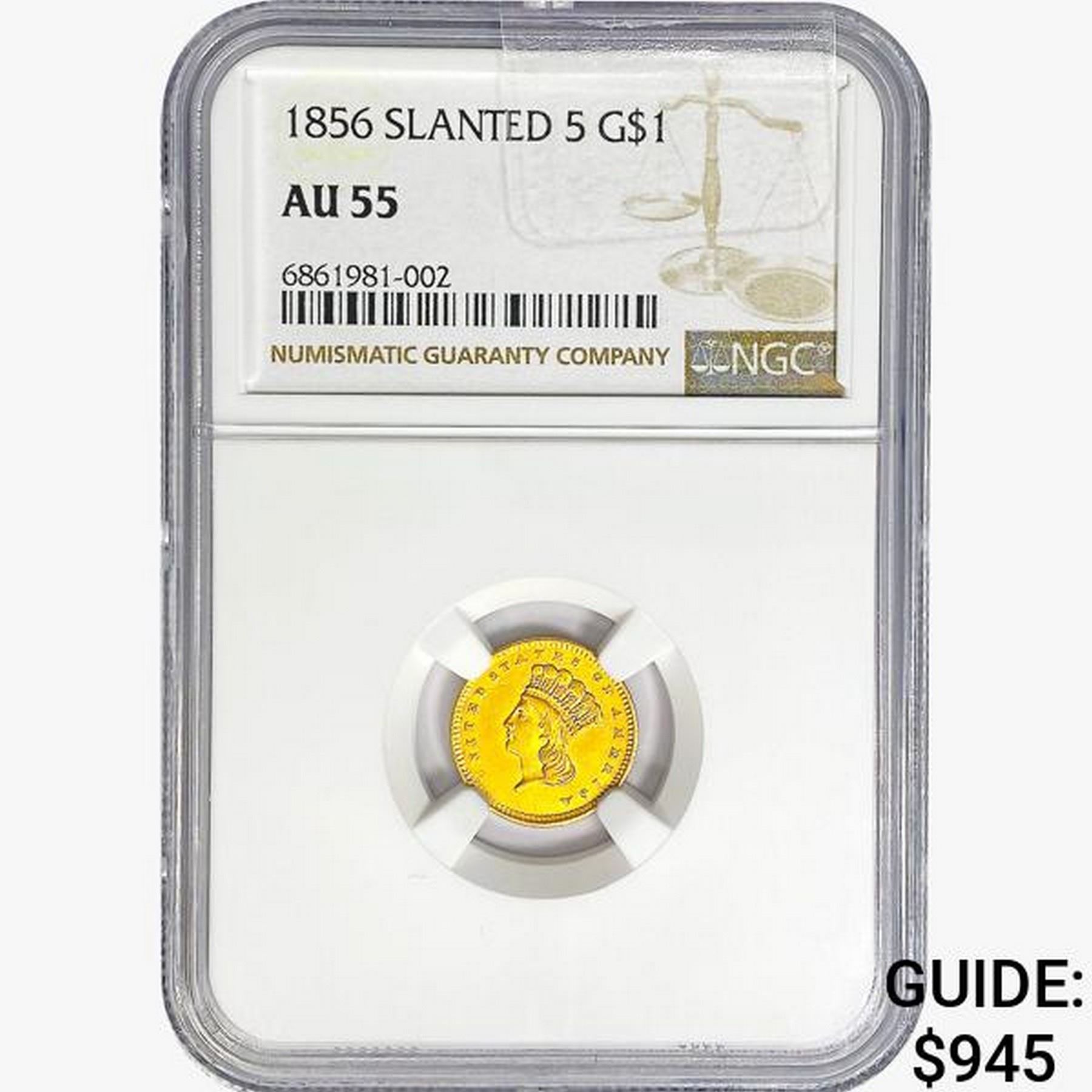 1856 Rare Gold Dollar NGC AU55 Slanted 5