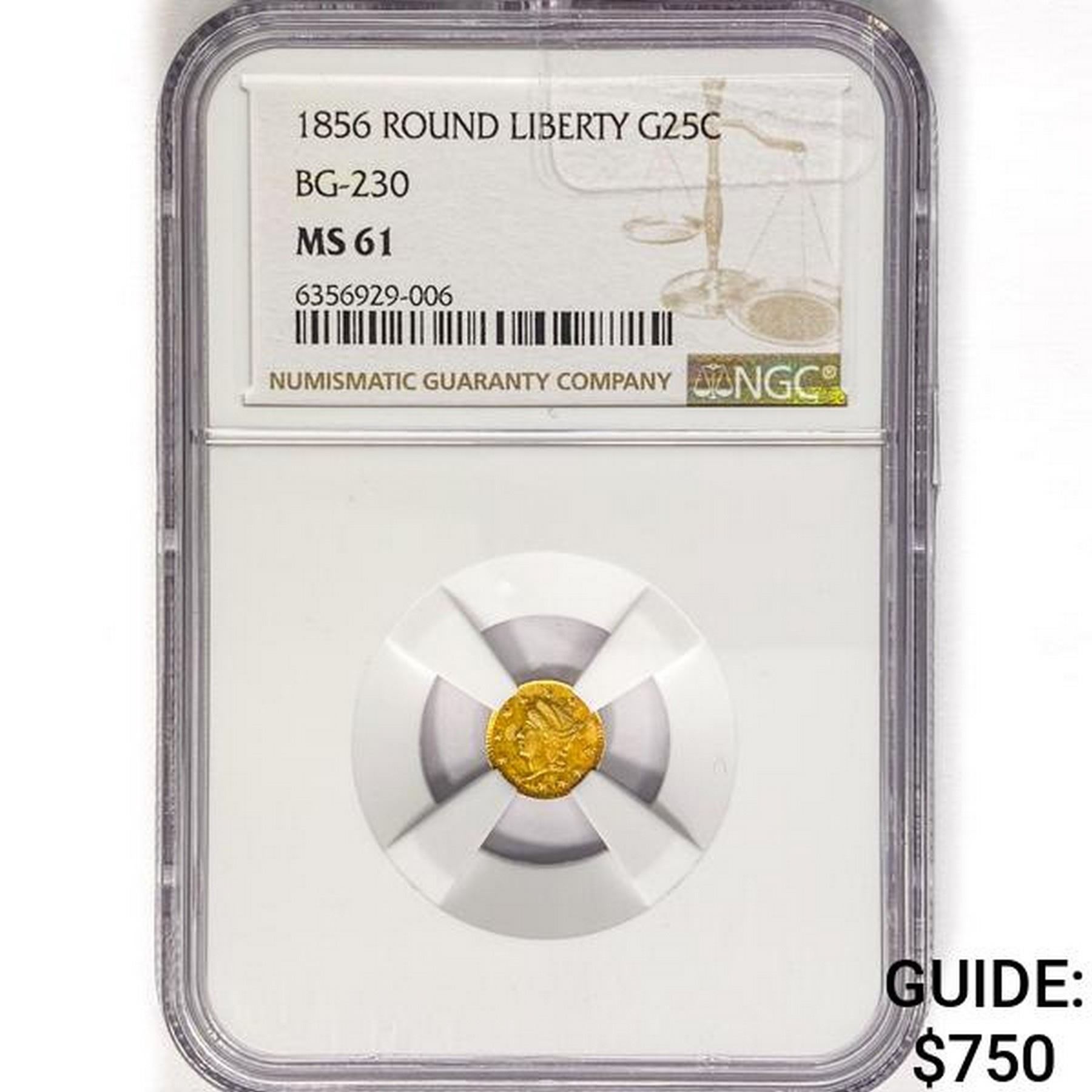 1856 Round Quarter NGC MS61 BG-230 Liberty