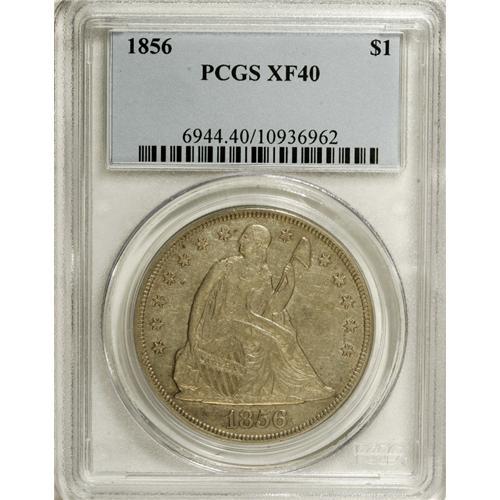 <B>1856 S$1 XF40 PCGS.</B></I> A lightly worn and well struck pre-war dollar, gold-gray with a trace of green at the slightly lustrous peripheral zones. Scattered handling marks appear on each side, and a significant dig is noted in the left obverse field.<BR><BR><b>Shipping:</b> Coins & Currency (<a target="_blank" href="http://www.heritageauctions.com/common/shipping.php">view shipping information</a>)