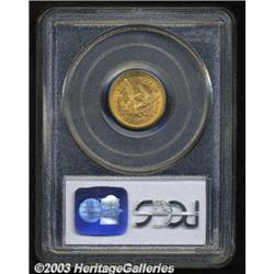 1856-S $2 1/2 MS64 PCGS. This is a scarce S-mint Quarter Eagle, and one that is very rare in Mint State. The strike on this piece is considerably above average for the issue, with no weakness near the obverse center. Fully lustrous throughout, with a few scattered, minor contact marks in the fields, this is an exceptional grade for this difficult early Coronet Quarter Eagle. Population: 7 in 64, 3 finer (10/03). Important notice: Heritage usually auctions material at the rate of 200-250 lots per hour. On some occasions eBay Live bid software or the Internet may not be able to keep up with the pace of the auction. We recommend placing a realistic absentee bid now as insurance to avoid disappointment. Occasionally the auctioneer may eliminate or reject an eBay Live bid, and the auctioneer may also reopen a lot after the close of the eBay live bidding (usually because we missed an audience bid), and may reject your bid even if it shows you as the winning bidder. By bidding via eBay Live, you agree that Heritage may award the lot to another bidder at its sole discretion under the circumstances described above or any other reasonable circumstances. Also please note that all Heritage lots purchased through eBay Live carry a 20% Buyer's Premium. Please make sure you read the Terms and Conditions before you bid.
