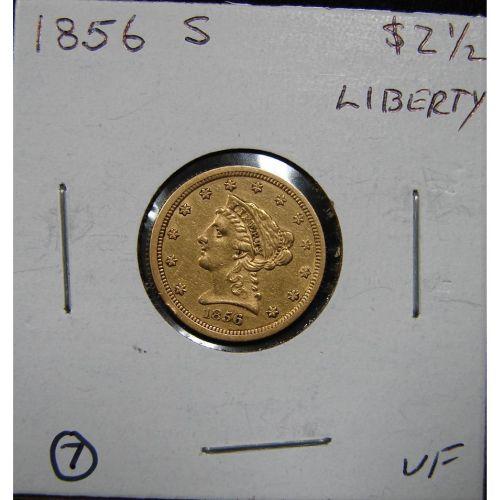 1856-S $2 ½ U.S. LIBERTY GOLD COIN. VF.