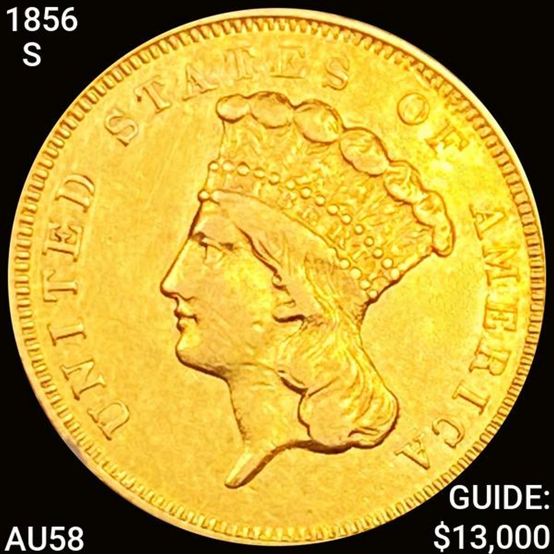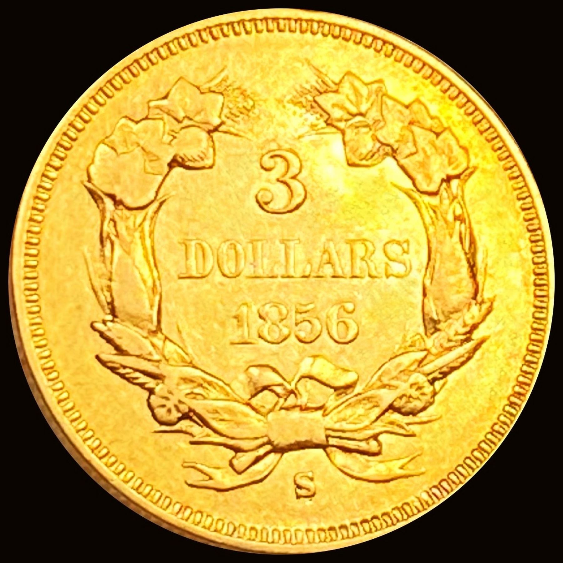 1856-S $3 Gold Piece CHOICE AU
