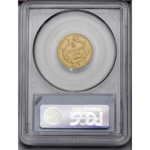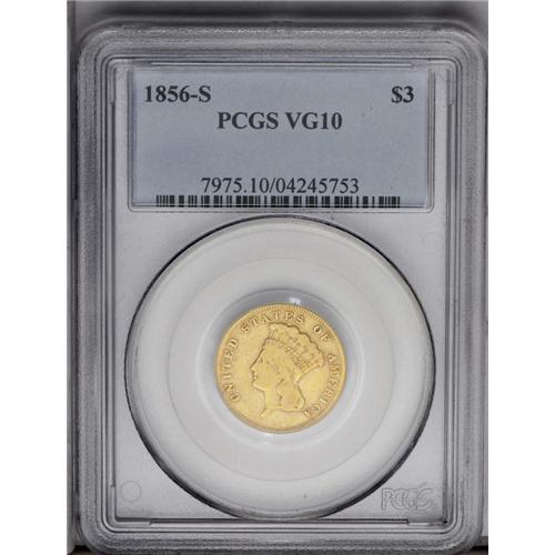 1856-S $3 VG10 PCGS. This low grade three should recei 1856-S[$3] VG10 PCGS.