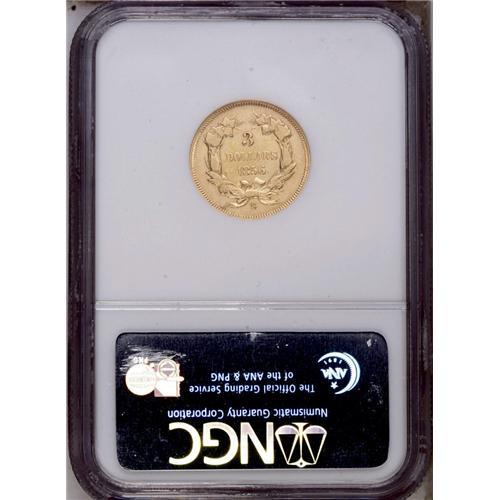 <B>1856-S<$3> XF40 NGC.</B></I> Breen-6356. Small S mintmark. Glimpses of luster outline the devices and legends. Wear is obvious on Liberty's curls and eyebrow. San Francisco three dollar pieces are scarce. Just 34,500 pieces were struck.