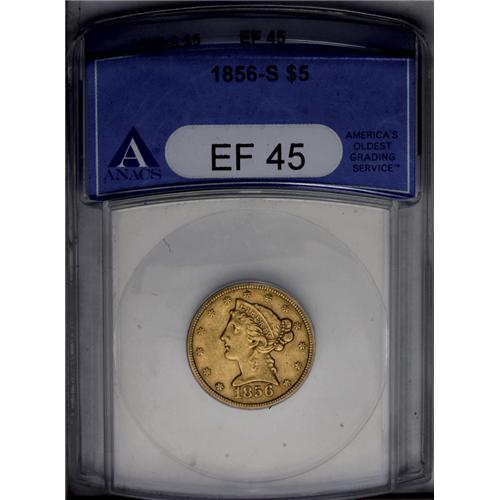 1856-S $5 XF45 ANACS. Well struck and evenly worn, wit 1856-S