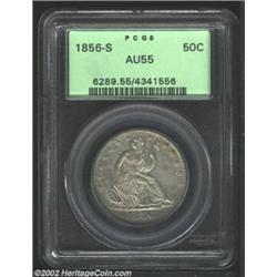 1856-S 50C AU55 PCGS. A bold specimen that has ample glimmers of luster on the obverse. The right ob