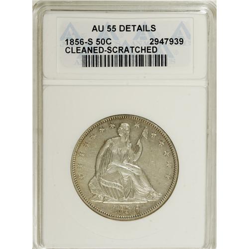 1856-S 50C --Cleaned, Scratched--ANACS. AU55 Details. A