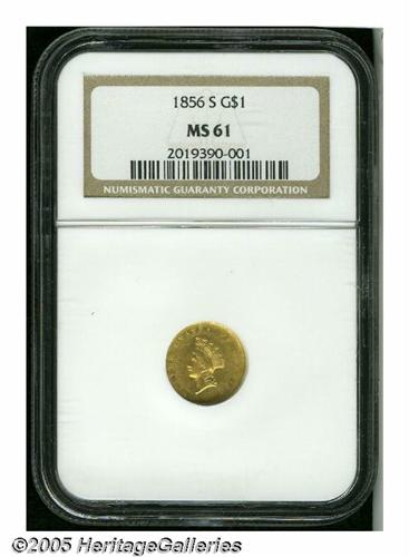 1856-S G$1 Type Two MS61 NGC. Breen 6045, the rar