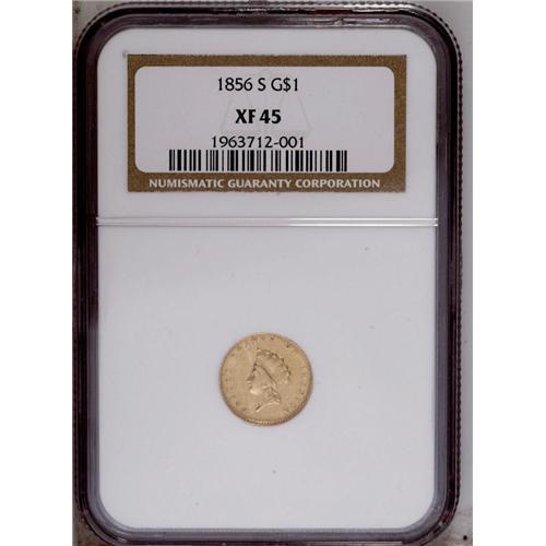 1856-S G$1 Type Two XF45 NGC. Normal S. A moderately c 1856-S[G$1] Type Two XF45 NGC.