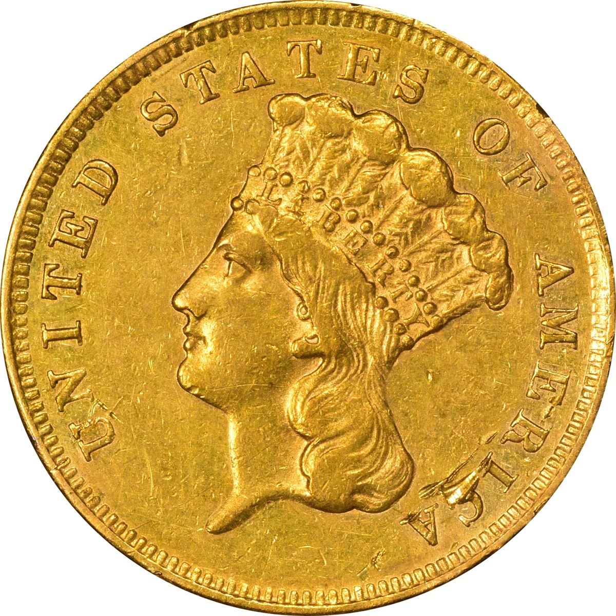 Lustrous deep rose-gold with two marks that no doubt account for the PCGS qualifier, one at ERICA on the obverse, the other in the reverse dentils at 4 o’clock. One of just four dates in the denomination struck in San Francisco, a group that includes the unique 1870-S. PCGS #7975