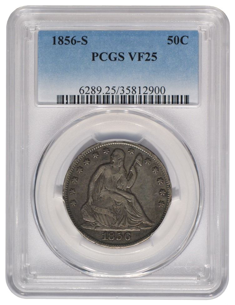 One 1856-S Liberty Seated Half Dollar Coin PCGS VF25.