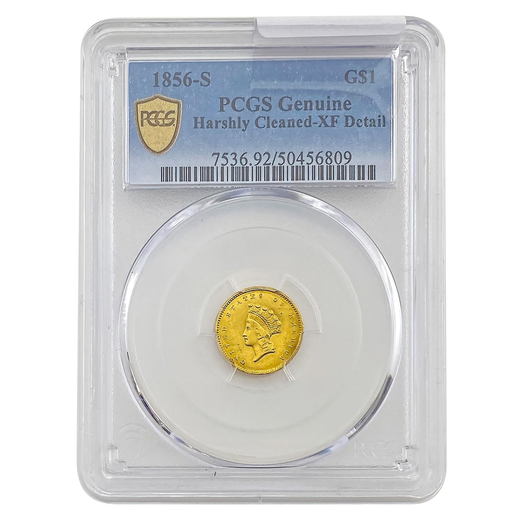 1856-S Rare Gold Dollar PCGS XF Detail Harshly Cleaned