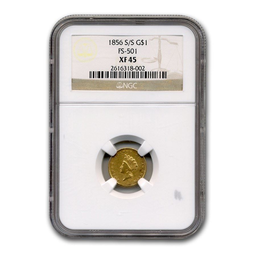 1856-S/S $1 Indian Head Gold XF-45 NGC (FS-501)