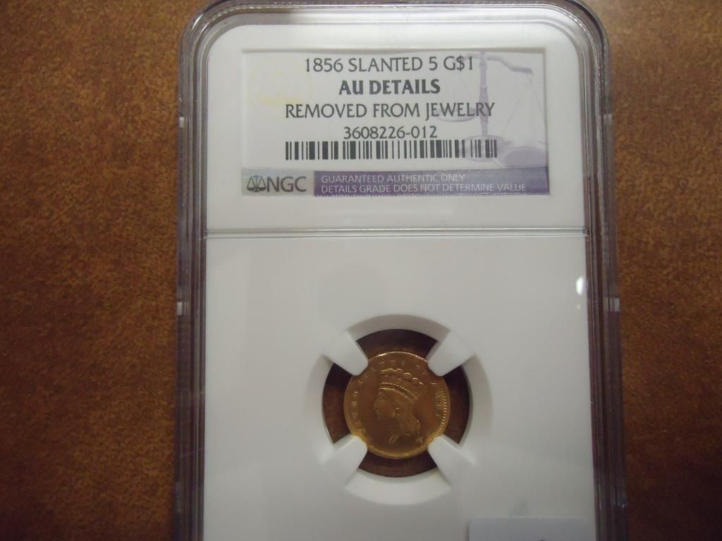 1856 SLANTED 5 GOLD $ NGC AU DETAILS