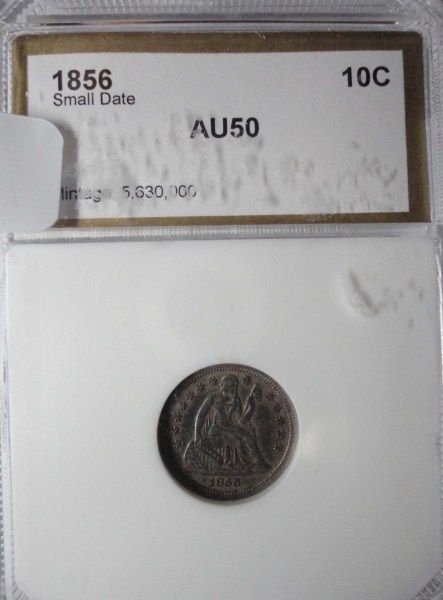 1856 SMALL DATE SEATED DIME PCI AU-50
